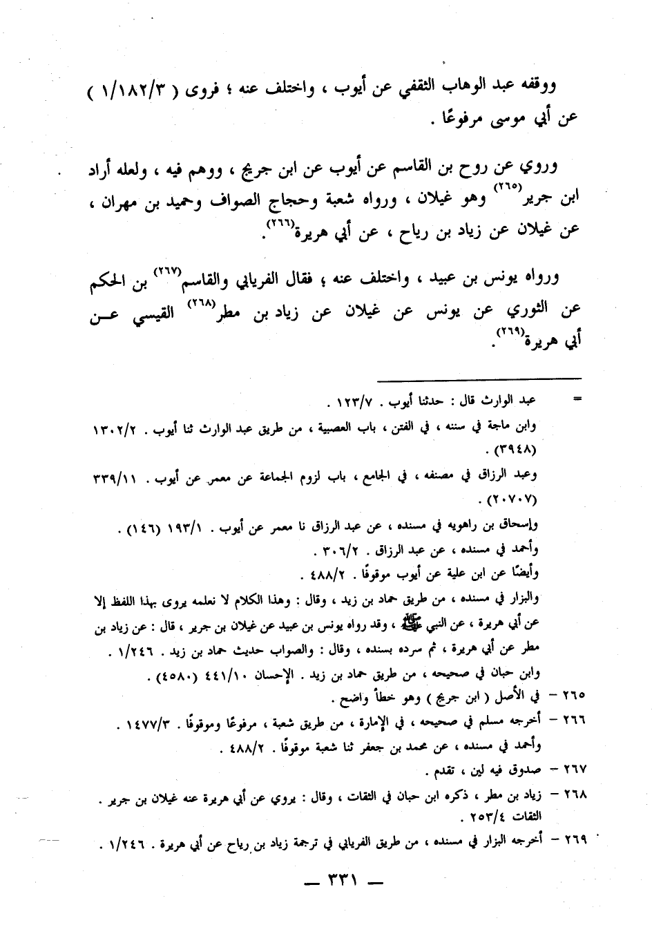 ورواه يونس بن عبيد، واختلف عنه، فقال الفريابي والقاسم بن الحكم عن الثوري، عن يونس عن غيلان عن زياد بن مطر القيسي، عَنْ أَبِي هُرَيْرَةَ.