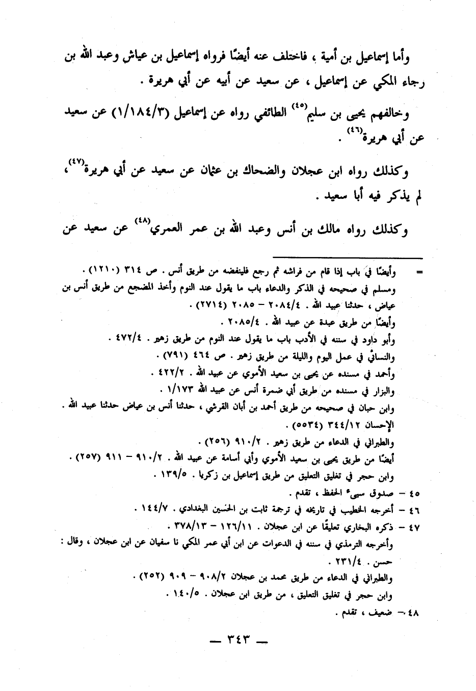 وأما إسماعيل بن أمية، فاختلف عنه أيضا فرواه إسماعيل بن عياش، وعبد الله بن رجاء المكي عن إسماعيل، عَنْ سَعِيدٍ، عَنْ أَبِيهِ، عَنْ أَبِي هُرَيْرَةَ.
