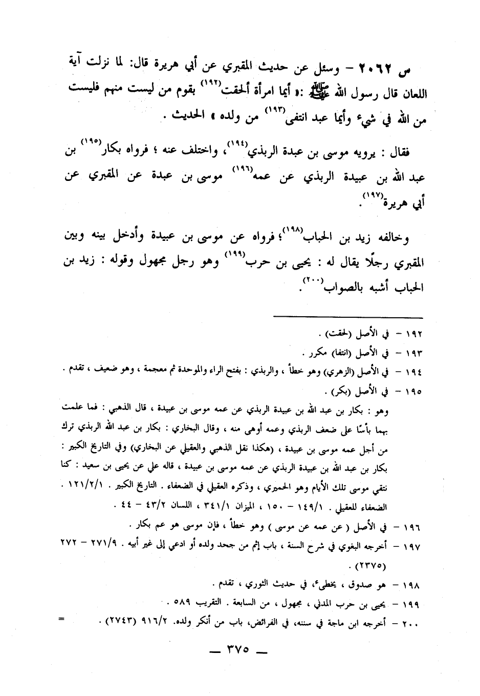 2062- وسئل عن حديث المقبري، عن أبي هريرة، قَالَ: لَمَّا نَزَلَتْ آيَةُ اللِّعَانِ، قَالَ رَسُولُ الله صلى الله عليه وسلم: أيما امرأة أَلْحَقَتْ، بِقَوْمٍ مَنْ لَيْسَتْ مِنْهُمْ، فَلَيْسَتْ مِنَ اللَّهِ فِي شَيْءٍ وَأَيْمَا عَبْدٌ انْتَفَى مِنْ وَلَدِهِ الْحَديِثَ.