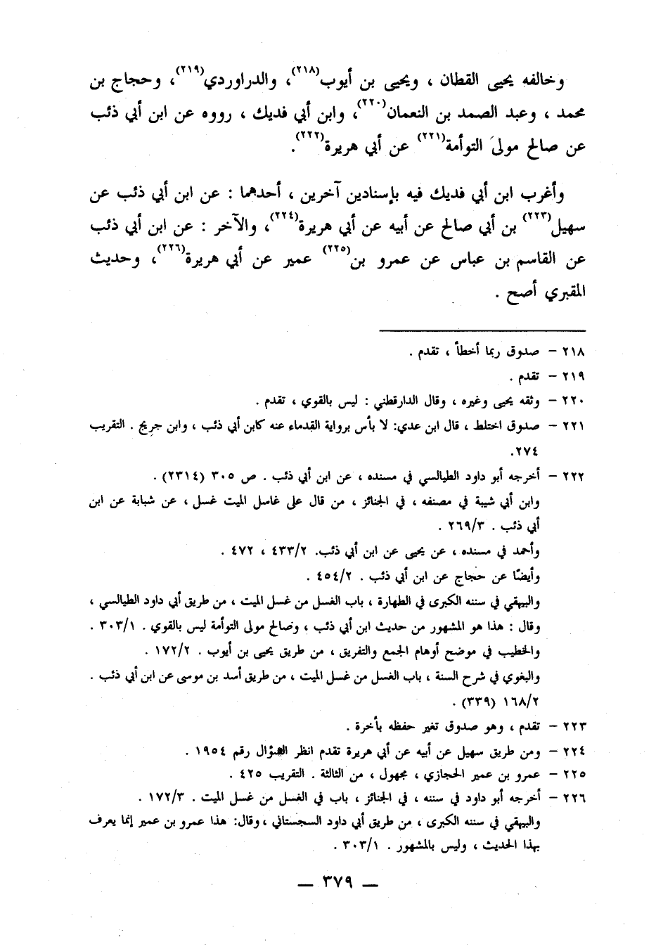وَخَالَفَهُ يَحْيَى الْقَطَّانُ، وَيَحْيَى بْنُ أَيُّوبَ، وَالدَّرَاوَرْدِيُّ، وَحَجَّاجُ بْنُ مُحَمَّدٍ، وَعَبْدُ الصَّمَدِ بْنُ النُّعْمَانِ، وَابْنُ أَبِي فُدَيْكٍ، رَوَوْهُ عَنِ ابْنِ أَبِي ذِئْبٍ، عَنْ صَالِحٍ مَوْلَى التَّوْءَمَةِ، عَنْ أَبِي هُرَيْرَةَ.