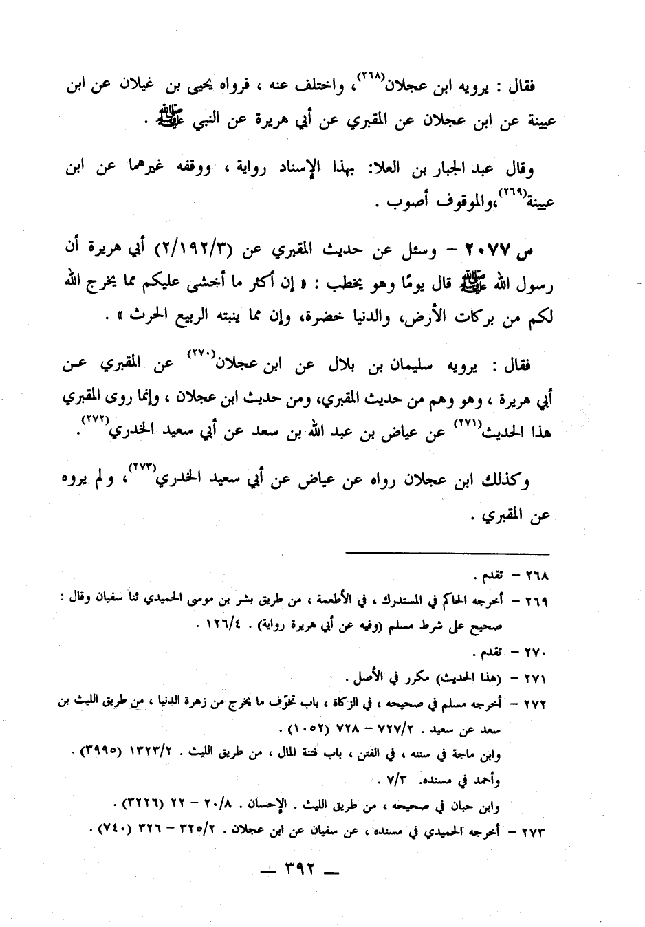 2077- وسئل عن حديث المقبري، عن أبي هريرة، أن رسول الله صلى الله عليه وَسَلَّمَ، قَالَ يَوْمًا وَهُوَ يَخْطُبُ: إِنَّ أَكْثَرَ مَا أَخْشَى عَلَيْكُمْ مِمَّا يُخْرِجُ اللَّهُ لَكُمْ مِنْ بَرَكَاتِ الْأَرْضِ، وَالدُّنْيَا خَضِرَةٌ، وَإِنَّ مِمَّا يُنْبِتُهُ الرَّبِيعُ الْحَرْثَ.