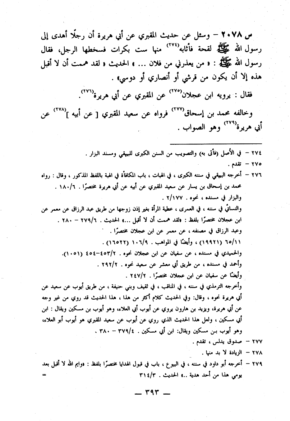 2078- وسئل عن حديث المقبري، عن أبي هُرَيْرَةَ، أَنَّ رَجُلًا أَهْدَى إِلَى رَسُولِ اللَّهِ صَلَّى اللَّهُ عَلَيْهِ وَسَلَّمَ لِقْحَةً فَأَثَابَهُ مِنْهَا سِتُّ بَكَرَاتٍ فَسَخِطَهَا الرَّجُلُ، فَقَالَ رَسُولُ اللَّهِ صَلَّى اللَّهُ عَلَيْهِ وَسَلَّمَ: مَنْ يَعْذُرْنِي مِنْ فُلَانٍ ... الْحَدِيثَ لَقَدْ هَمَمْتُ أَنْ لَا أَقْبَلَ هَذِهِ إِلَّا أَنْ يَكُونَ مِنْ قُرَشِيٍّ، أَوْ أَنْصَارِيٍّ، أَوْ دَوْسِيٍّ.