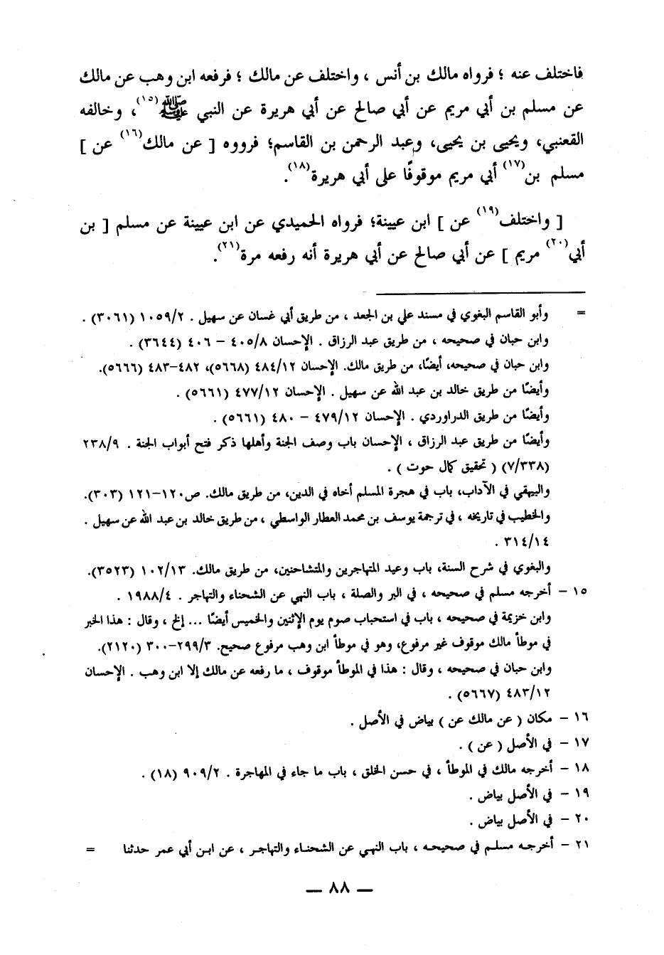 وَاخْتُلِفَ عَنْ مَالِكٍ، فَرَفَعَهُ ابْنُ وَهْبٍ عَنْ مَالِكٍ، عَنْ مُسْلِمِ بْنِ أَبِي مَرْيَمَ، عَنْ أَبِي صَالِحٍ، عَنْ أَبِي هُرَيْرَةَ، عَنِ النَّبِيِّ صَلَّى الله عليه وسلم.