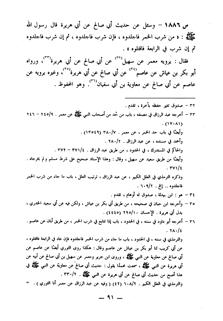 1886- وَسُئِلَ عَنْ حَدِيثِ أَبِي صَالِحٍ، عَنْ أَبِي هريرة، قال رسول الله صلى الله عليه وَسَلَّمَ: مَنْ شَرِبَ الْخَمْرَ فَاجْلِدُوهُ، فَإِنْ شَرِبَ فَاجْلِدُوهُ، ثُمَّ إِنْ شَرِبَ فَاجْلِدُوهُ ثُمَّ إِنْ شَرِبَ فِي الرَّابِعَةِ فَاقْتُلُوهُ.