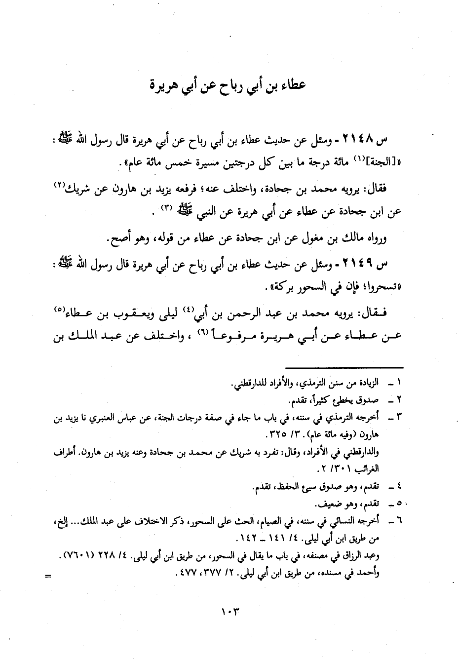 2149- وَسُئِلَ عَنْ حَدِيثِ عَطَاءِ بْنِ أَبِي رَبَاحٍ، عن أبي هريرة، قال رسول الله صلى اللَّهُ عَلَيْهِ وَسَلَّمَ: تَسَحَّرُوا، فَإِنَّ فِي السَّحُورِ بَرَكَةٌ.