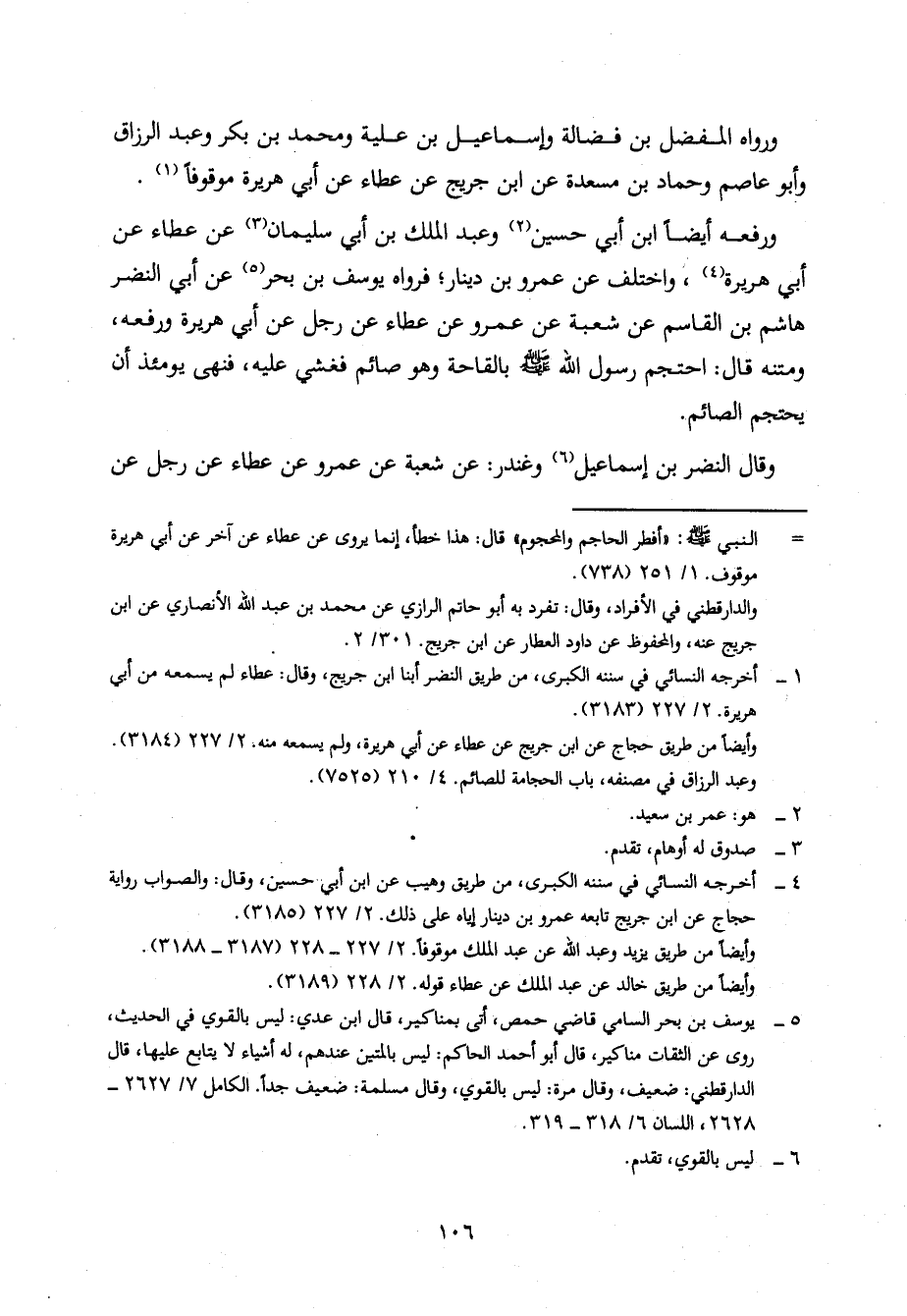 وَاخْتُلِفَ عَنْ عَمْرِو بْنِ دِينَارٍ، فَرَوَاهُ يُوسُفُ بْنُ بَحْرٍ، عَنْ أَبِي النَّضْرِ هَاشِمِ بْنِ الْقَاسِمِ، عَنْ شُعْبَةَ، عَنْ عَمْرٍو، عَنْ عَطَاءٍ، عَنْ رَجُلٍ، عَنْ أَبِي هُرَيْرَةَ، وَرَفَعَهُ، وَمَتْنُهُ، قَالَ: احْتَجَمَ رَسُولِ اللَّهِ صَلَّى اللَّهُ عَلَيْهِ وَسَلَّمَ بِالْقَاحَةِ وَهُوَ صَائِمٌ فَغُشِيَ عَلَيْهِ، فَنَهَى يَوْمَئِذٍ أَنْ يَحْتَجِمَ الصَّائِمُ.