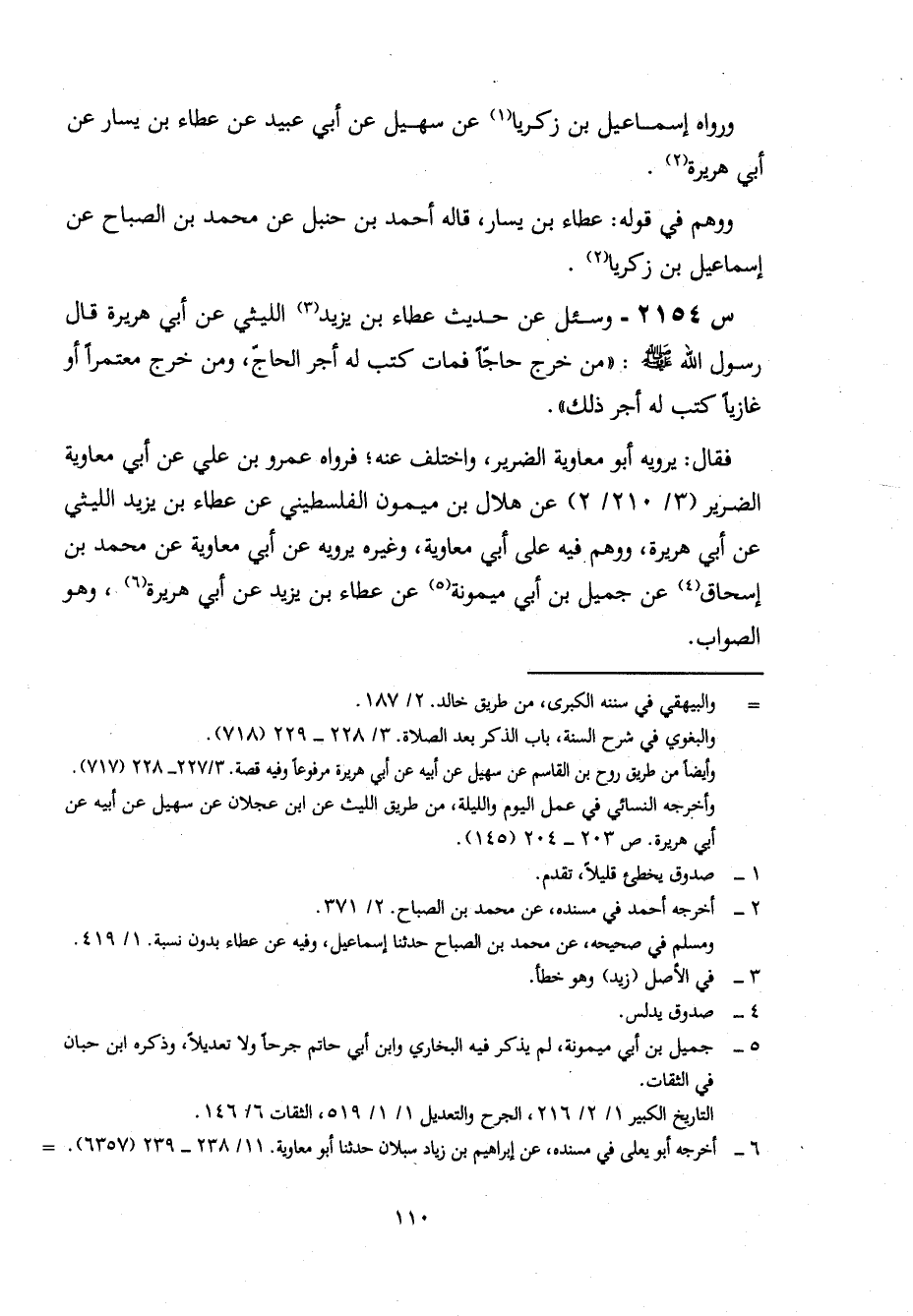 2154- وَسُئِلَ عَنْ حَدِيثِ عَطَاءِ بْنِ يَزِيدَ اللَّيْثِيِّ، عن أبي هريرة، قال رسول الله صلى اللَّهُ عَلَيْهِ وَسَلَّمَ: مَنْ خَرَجَ حَاجًّا فَمَاتَ كُتِبَ لَهُ أَجْرُ الْحَاجِّ، وَمَنْ خَرَجَ مُعْتَمِرًا، أَوْ غَازِيًا كُتِبَ لَهُ أَجْرُ ذَلِكَ.