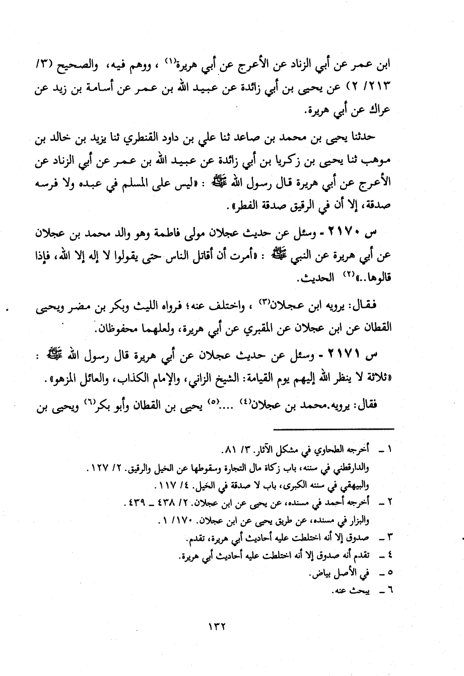 2171- وَسُئِلَ عَنْ حَدِيثِ عَجْلَانَ، عَنْ أَبِي هُرَيْرَةَ، قال رسول الله صلى الله عليه وسلم: ثَلَاثَةٌ لَا يَنْظُرُ اللَّهُ إِلَيْهِمْ يَوْمَ الْقِيَامَةِ: الشَّيْخُ الزَّانِي، وَالْإِمَامُ الْكَذَّابُ، وَالْعَائِلُ الْمَزْهُوُّ.