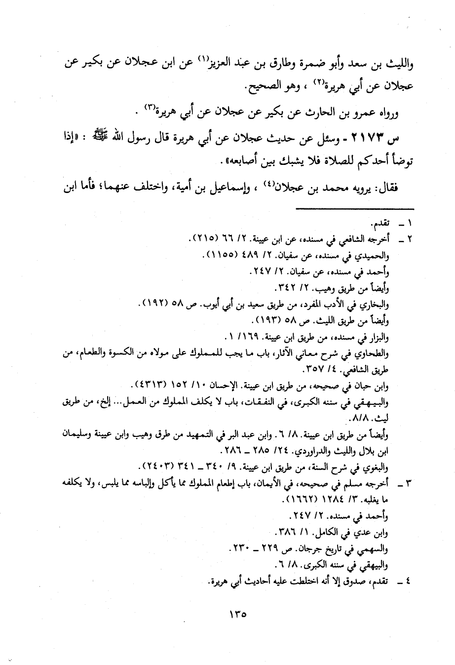 2173- وَسُئِلَ عَنْ حَدِيثِ عَجْلَانَ، عَنْ أَبِي هُرَيْرَةَ، قال رسول الله صلى الله عليه وسلم: إِذَا تَوَضَّأَ أَحَدُكُمْ لِلصَّلَاةِ فَلَا يُشَبِّكْ بَيْنَ أَصَابِعِهِ.