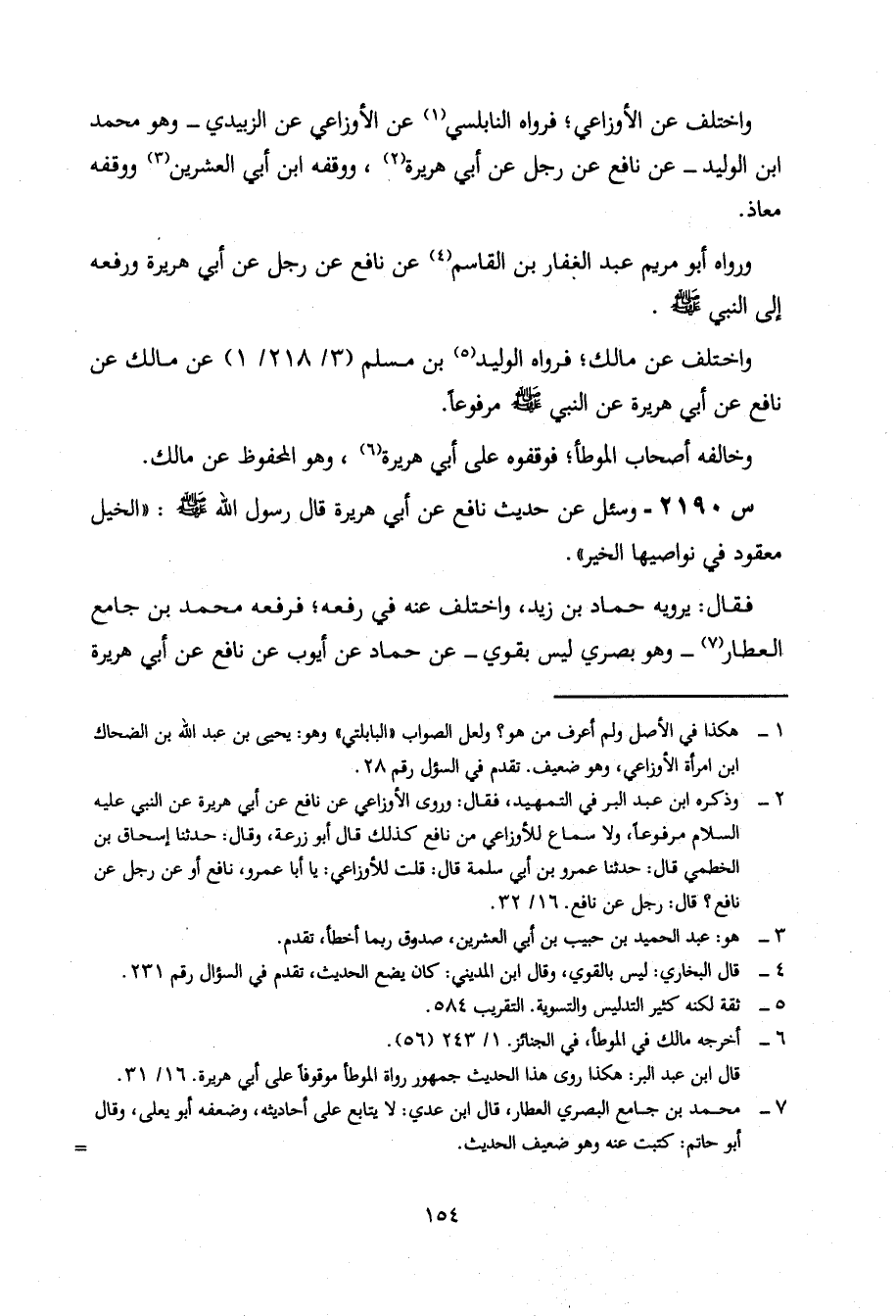 2190- وَسُئِلَ عَنْ حَدِيثِ نَافِعٍ، عَنْ أَبِي هُرَيْرَةَ، قال رسول الله صلى الله عليه وسلم: الخيل معقود في نواصيها الْخَيْرُ.