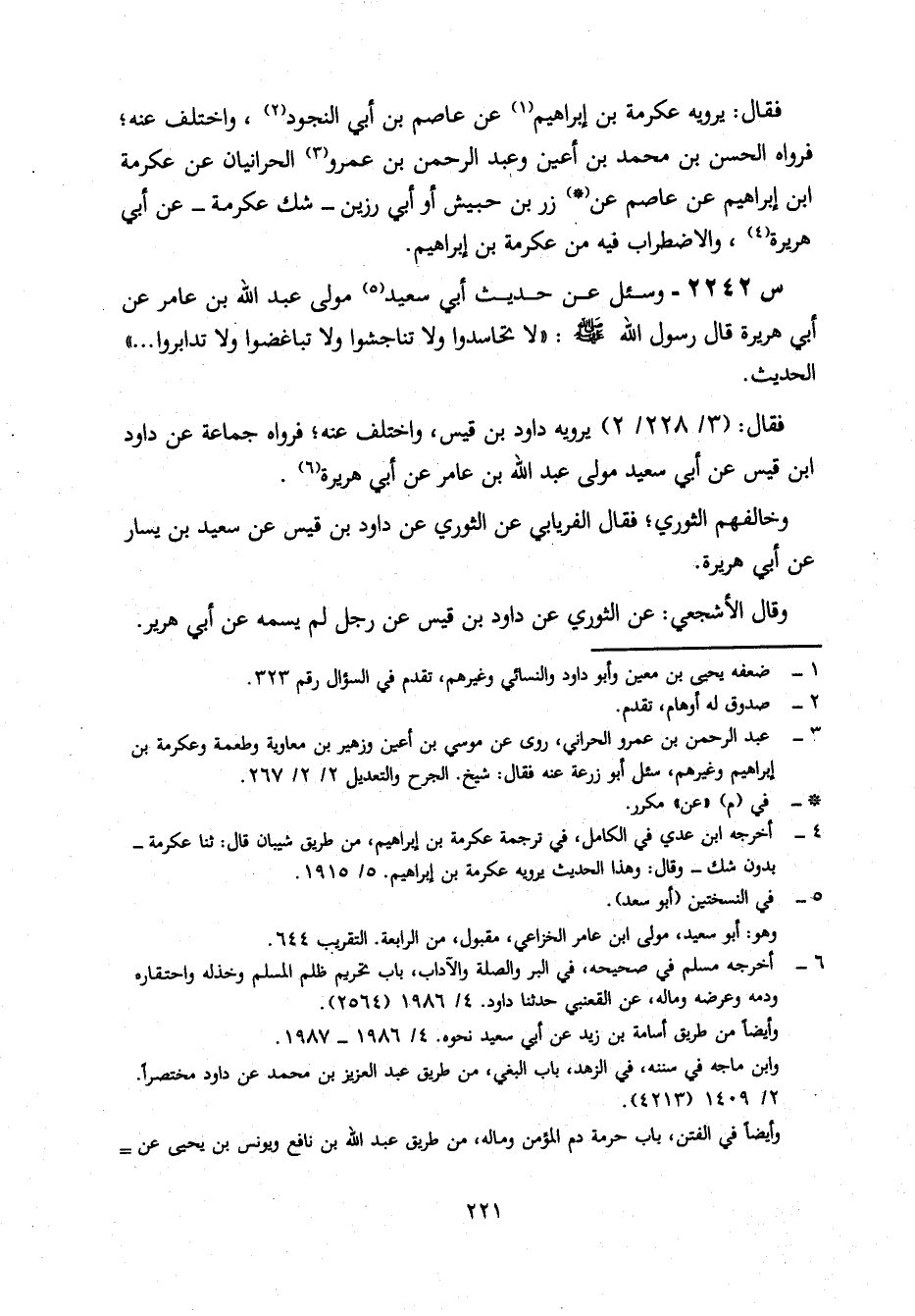 2242- وَسُئِلَ عَنْ حَدِيثِ أَبِي سَعِيدٍ مَوْلَى عَبْدِ اللَّهِ بْنِ عَامِرٍ، عَنْ أَبِي هُرَيْرَةَ، قَالَ رسول الله صلى الله عليه وسلم: لا تَحَاسَدُوا وَلَا تَنَاجَشُوا وَلَا تَبَاغَضُوا وَلَا تَدَابَرُوا ... الْحَدِيثَ.
