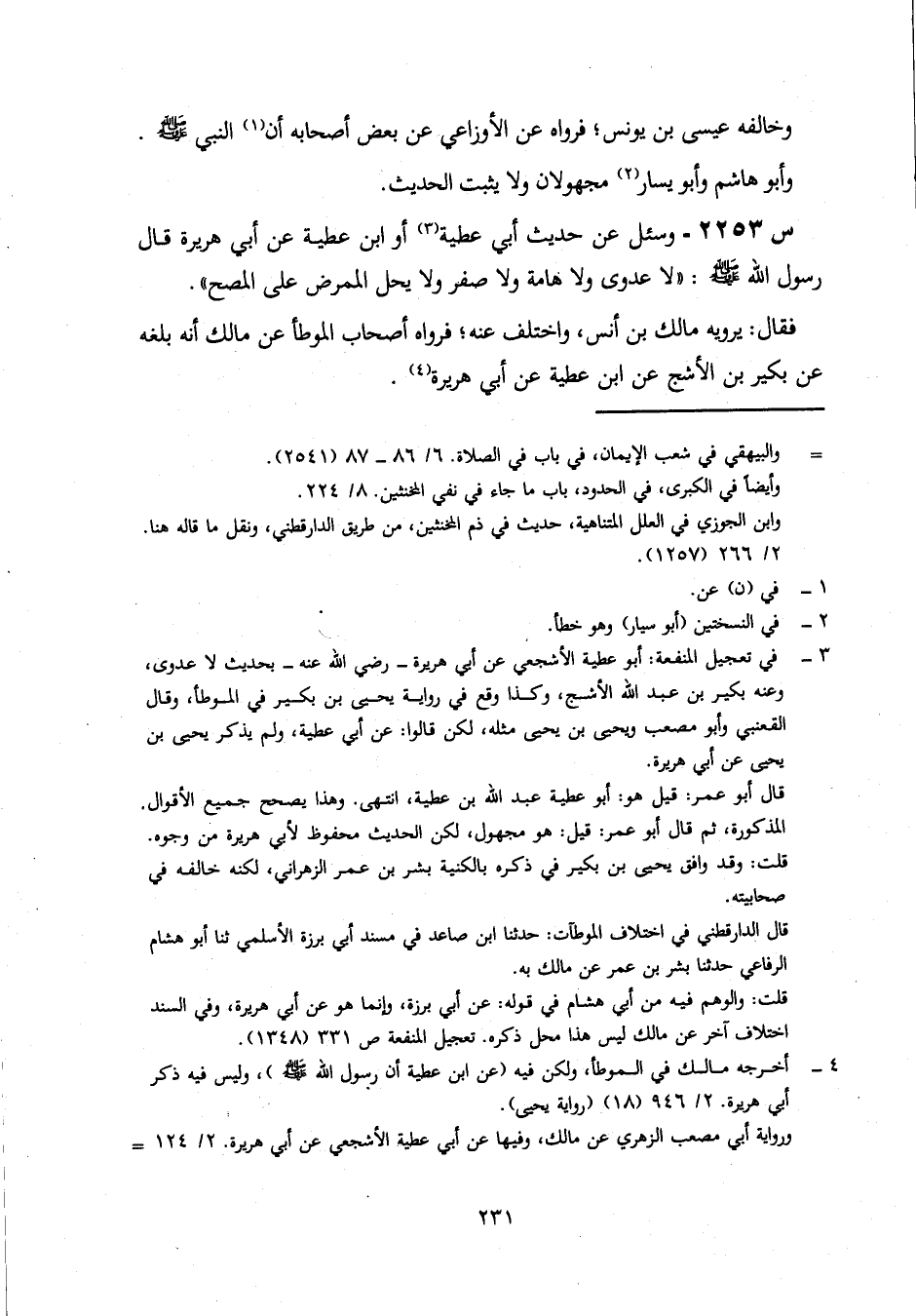 2253- وَسُئِلَ عَنْ حَدِيثِ أَبِي عَطِيَّةَ، أَوِ ابْنِ عَطِيَّةَ، عَنْ أَبِي هُرَيْرَةَ، قَالَ رَسُولُ اللَّهِ صَلَّى اللَّهُ عَلَيْهِ وَسَلَّمَ: لَا عَدْوَى وَلَا هَامَّةَ وَلَا صَفَرَ، وَلَا يَحِلُّ الْمُمَرِّضُ عَلَى الْمُصِحِّ.