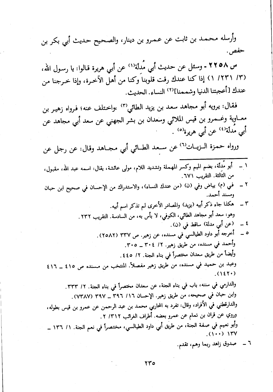 2258- وَسُئِلَ عَنْ حَدِيثِ أَبِي مُدِلَّةَ، عَنْ أَبِي هُرَيْرَةَ قَالُوا: يَا رَسُولَ اللَّهِ، إِذَا كُنَّا عِنْدَكَ رَقَّتْ قُلُوبُنَا وَكُنَّا مِنْ أَهْلِ الْآخِرَةِ، وَإِذَا خَرَجْنَا مِنْ عِنْدِكَ أَعْجَبَتْنَا الدُّنْيَا وَشَمَمْنَا النِّسَاءَ ... الْحَدِيثَ.
