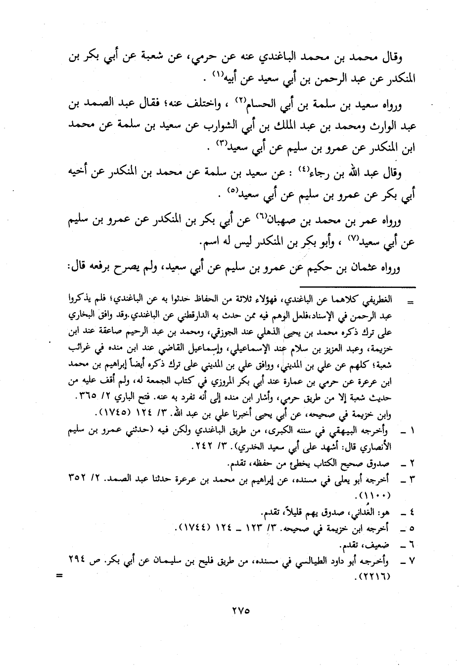 وَرَوَى هَذَا الْحَدِيثَ زُهَيْرُ بْنُ مُحَمَّدٍ، فَقَالَ: عَنْ مُحَمَّدِ بْنِ الْمُنْكَدِرِ، عَنْ جَابِرٍ، وَوَهِمَ فِيهِ، وَإِنَّمَا رَوَاهُ مُحَمَّدُ بْنُ الْمُنْكَدِرِ، عَنْ أَخِيهِ أَبِي بَكْرٍ، عَنْ عَمْرِو بْنِ سُلَيْمٍ الزُّرَقِيِّ، عَنْ أَبِي سَعِيدٍ، وَالْقَوْلُ الْأَوَّلُ هُوَ الصَّحِيحُ.
