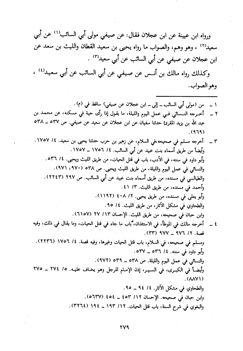 وَرَوَاهُ ابْنُ عُيَيْنَةَ، عَنِ ابْنِ عَجْلَانَ، فَقَالَ: عَنْ صَيْفِيٍّ مَوْلَى أَبِي السَّائِبِ، عَنْ أَبِي سَعِيدٍ، وَهُوَ وَهْمٌ، وَالصَّوَابُ مَا رَوَاهُ يَحْيَى بْنُ سَعِيدٍ الْقَطَّانُ، وَاللَّيْثُ بْنُ سَعْدٍ، عَنِ ابْنِ عَجْلَانَ، عَنْ صَيْفِيٍّ، عَنْ أَبِي السَّائِبِ، عَنْ أَبِي سَعِيدٍ.