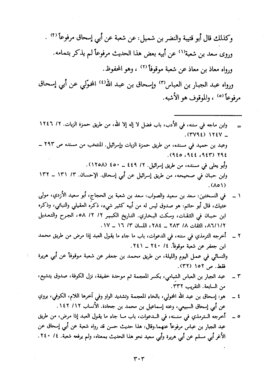 وَكَذَلِكَ قَالَ أَبُو قُتَيْبَةَ وَالنَّضْرُ بْنُ شُمَيْلٍ: عَنْ شُعْبَةَ، عَنْ أَبِي إِسْحَاقَ مَرْفُوعًا.