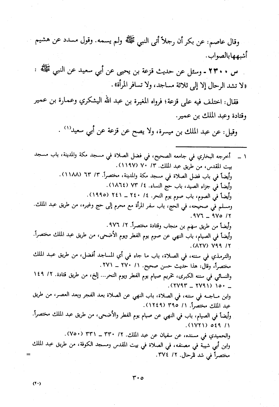 2300- وَسُئِلَ عَنْ حَدِيثِ قَزَعَةَ بْنِ يَحْيَى، عَنْ أَبِي سَعِيدٍ، عَنِ النَّبِيِّ صَلَّى اللَّهُ عَلَيْهِ وَسَلَّمَ: لَا تُشَدُّ الرِّحَالُ إِلَّا إِلَى ثَلَاثَةِ مَسَاجِدَ، وَلَا تُسَافِرُ الْمَرْأَةُ.
