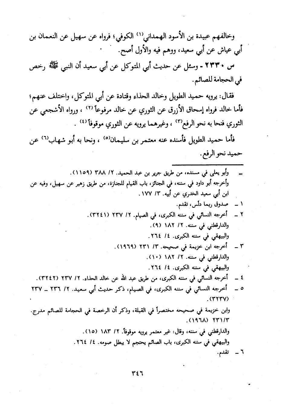 2330- وَسُئِلَ عَنْ حَدِيثِ أَبِي الْمُتَوَكِّلِ، عَنْ أَبِي سعيد، أن النبي صلى الله عليه وسلم، رَخَّصَ فِي الْحِجَامَةَ لِلصَّائِمِ.