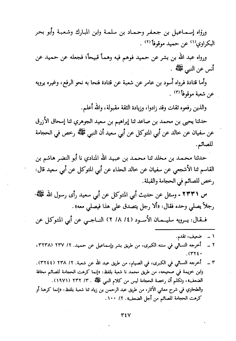 حَدَّثَنَا يَحْيَى بْنُ محمد بن صاعد، حدثنا إبراهيم بن سعيد الجوهري، حدثنا إِسْحَاقُ الْأَزْرَقُ، عَنْ سُفْيَانَ، عَنْ خَالِدٍ، عَنْ أبي المتوكل، عن أبي سعيد، أن النبي صلى الله عليه وسلم رخص في الحجامة للصائم.
