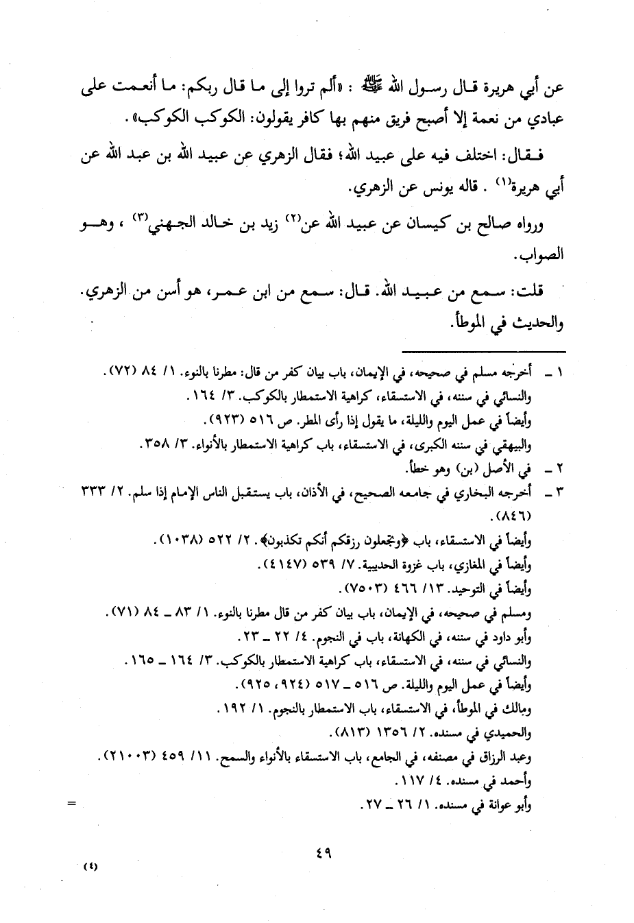 2121- وَسُئِلَ عَنْ حَدِيثِ عُبَيْدِ اللَّهِ بْنِ عَبْدِ اللَّهِ بْنِ عُتْبَةَ، عَنْ أَبِي هُرَيْرَةَ، قَالَ رَسُولُ اللَّهِ صَلَّى اللَّهُ عَلَيْهِ وَسَلَّمَ: أَلَمْ تَرَوْا إِلَى مَا قَالَ رَبُّكُمْ: مَا أَنْعَمْتُ عَلَى عِبَادِي مِنْ نِعْمَةٍ إِلَّا أَصْبَحَ فَرِيقٌ منهم بها كافرا، يقولون: الكوكب الْكَوْكَبُ.