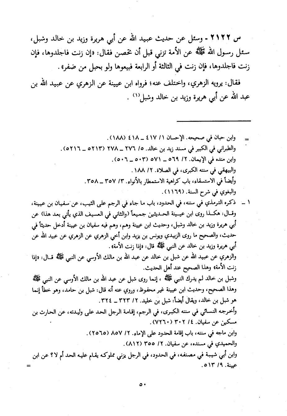 2122- وَسُئِلَ عَنْ حَدِيثِ عُبَيْدِ اللَّهِ، عَنْ أَبِي هُرَيْرَةَ، وَزَيْدِ بْنِ خَالِدٍ، وَشِبْلٍ، سُئِلَ رَسُولُ اللَّهِ صَلَّى اللَّهُ عَلَيْهِ وَسَلَّمَ، عَنِ الْأَمَةِ تَزْنِي قَبْلَ أَنْ تُحْصِنَ، فَقَالَ: إِنْ زَنَتْ فَاجْلِدُوهَا، فَإِنْ زَنَتْ فَاجْلِدُوهَا، فَإِنْ زَنَتْ فِي الثَّالِثَةِ، أَوِ الرَّابِعَةِ فَبِيعُوهَا وَلَوْ بِحَبْلٍ مِنْ ضَفْرٍ.