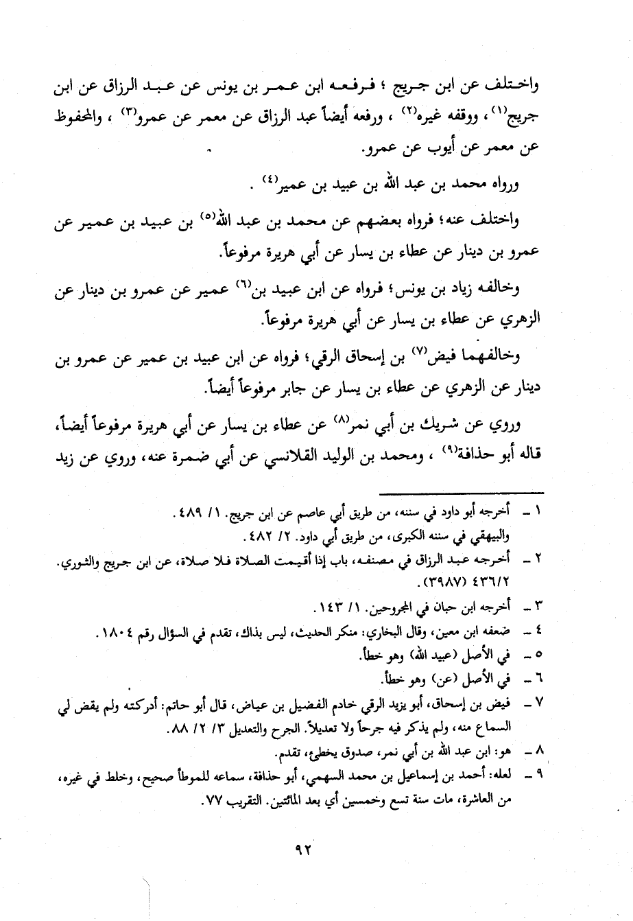 وَاخْتُلِفَ عَنِ ابْنِ جُرَيْجٍ، فَرَفَعَهُ ابْنُ عُمَرَ بْنِ يُونُسَ، عَنْ عَبْدِ الرَّزَّاقِ، عَنِ ابْنِ جُرَيْجٍ، وَوَقَفَهُ غَيْرُهُ، وَرَفَعَهُ أَيْضًا عَبْدُ الرَّزَّاقِ، عَنْ مَعْمَرٍ، عَنْ عَمْرٍو، وَالْمَحْفُوظُ عَنْ مَعْمَرٍ، عَنْ أَيُّوبَ، عَنْ عَمْرٍو.