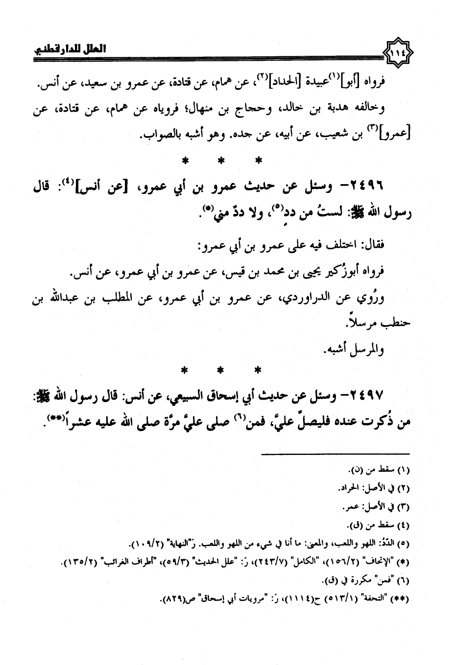 2496- وسئل عن حديث عمرو بن أبي عمرو، عن أنس، قال رسول الله صلى الله عليه وسلم: لست من دد، ولا دد مني.