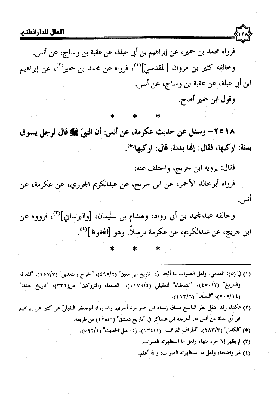 2518- وسئل عن حديث عكرمة، عَنْ أَنَسٍ أَنَّ النَّبِيَّ صَلَّى اللَّهُ عَلَيْهِ وسلم قال لرجل يسوق بدنة: اركبها، فقال: إنها بدنة، قال: اركبها.