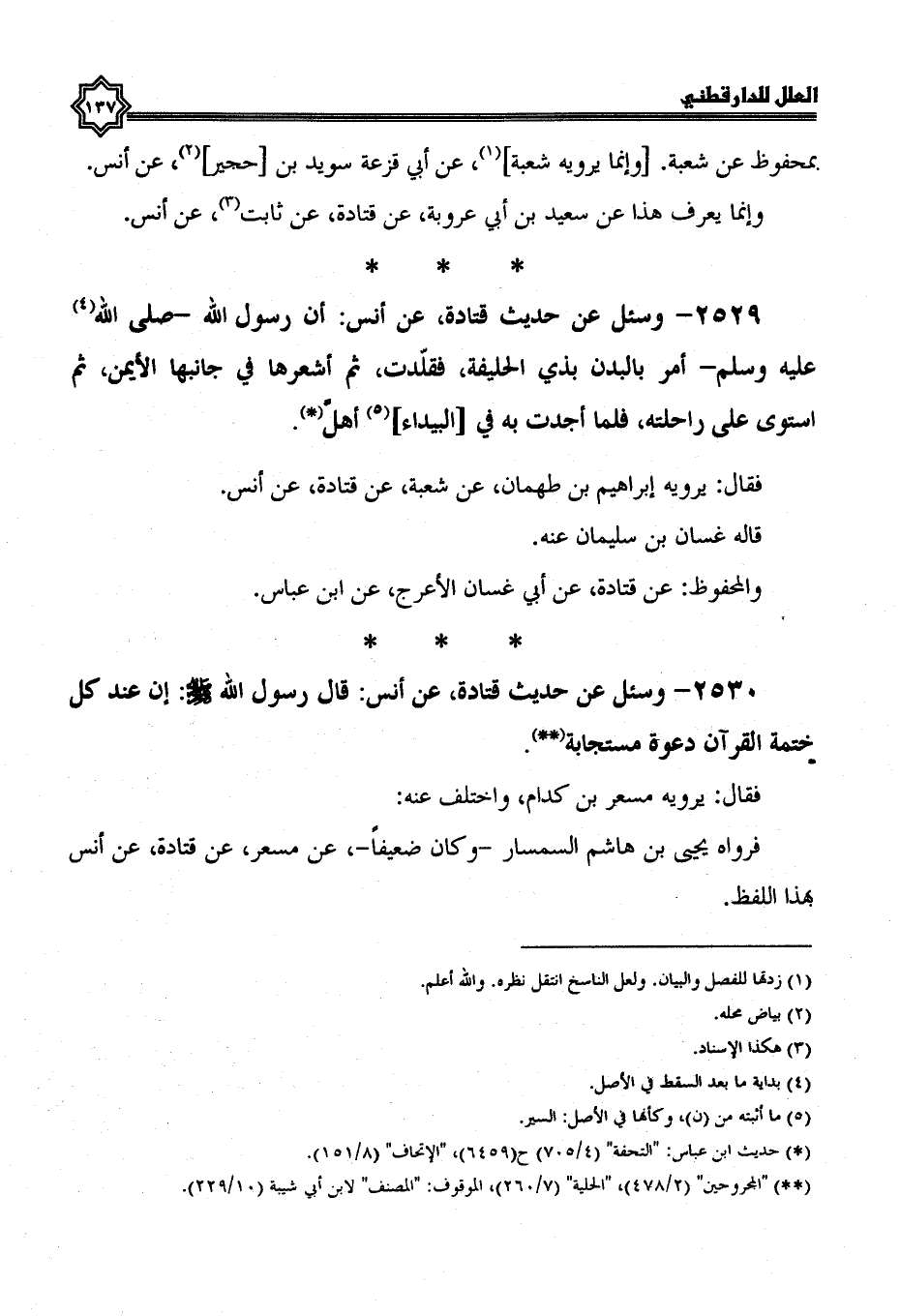 2530- وسئل عن حديث قتادة، عن أنس، قال رسول الله صلى الله عليه وسلم: إن عند كل ختمة القرآن دعوة مستجابة.