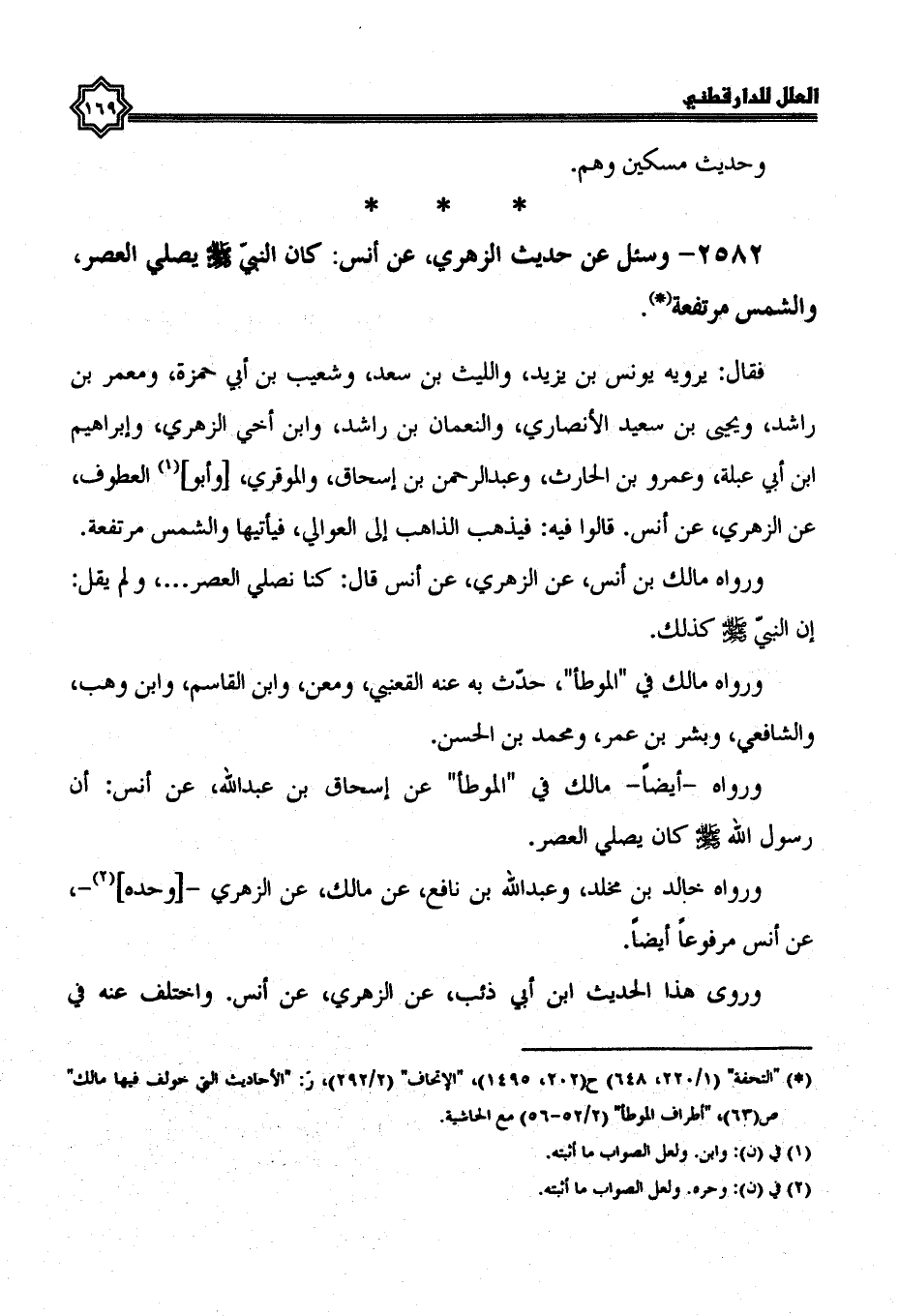 2582- وسئل عن حديث الزهري، عن أنس كَانَ النَّبِيُّ صَلَّى اللَّهُ عَلَيْهِ وَسَلَّمَ يُصَلِّي العصر، والشمس مرتفعة.
