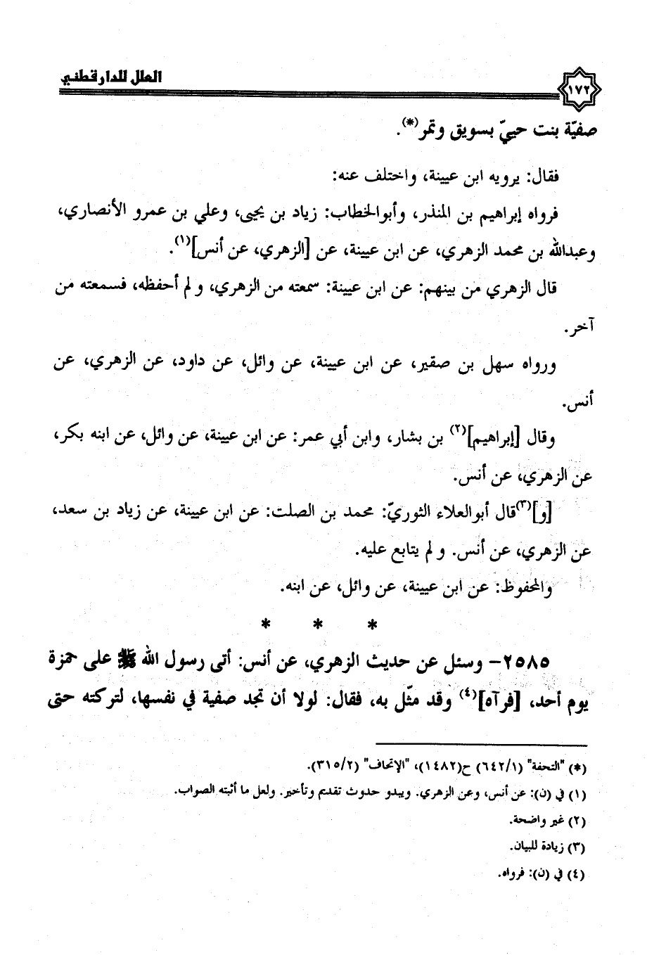 2584- وسئل عن حديث الزهري، عن أنس أولم رسول الله صلى الله عليه وسلم على صفية بنت حيي بسويق وتمر.