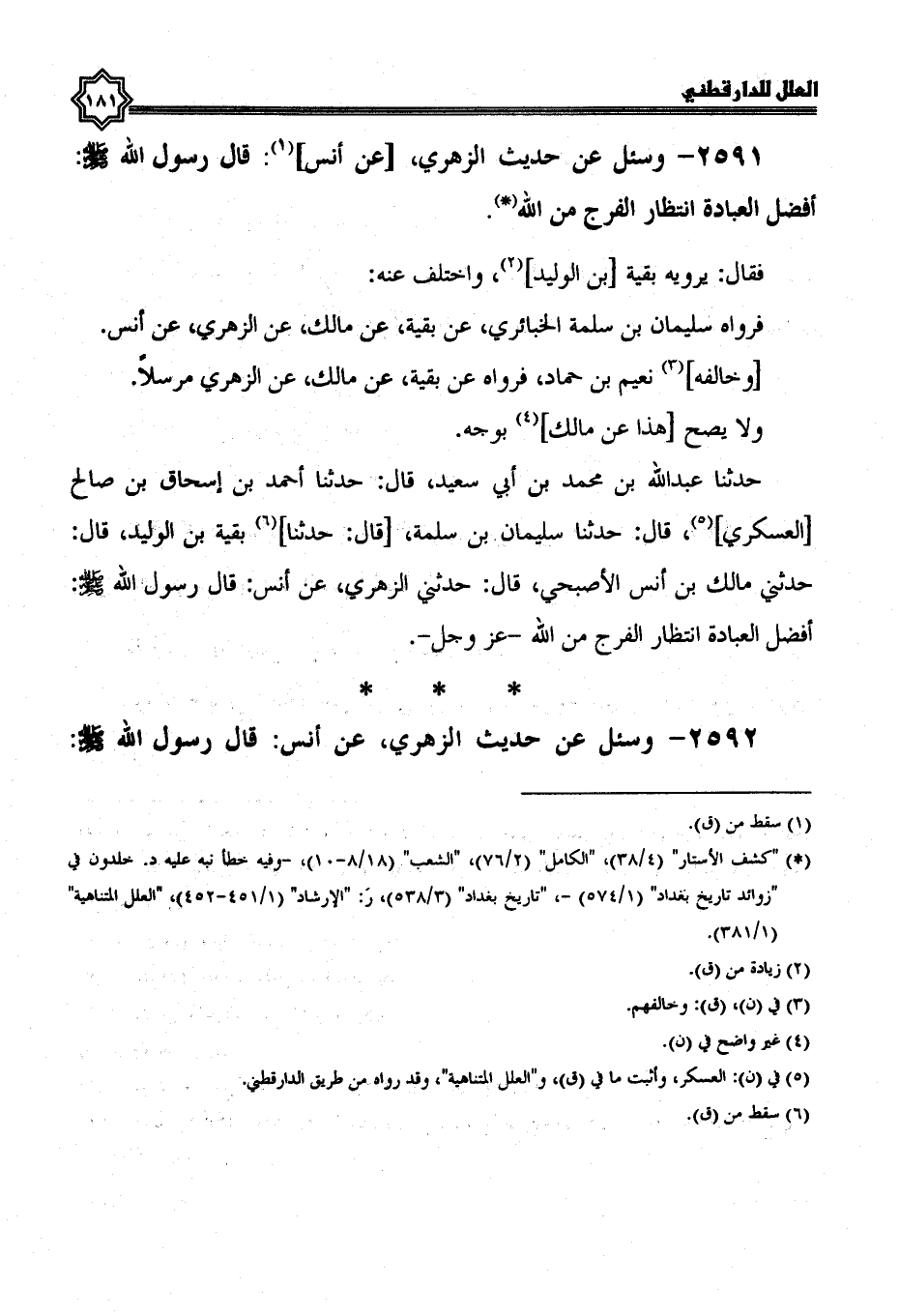 2591- وسئل عن حديث الزهري، عن أنس، قال رسول الله صلى الله عليه وسلم: أفضل العبادة انتظار الفرج من الله.