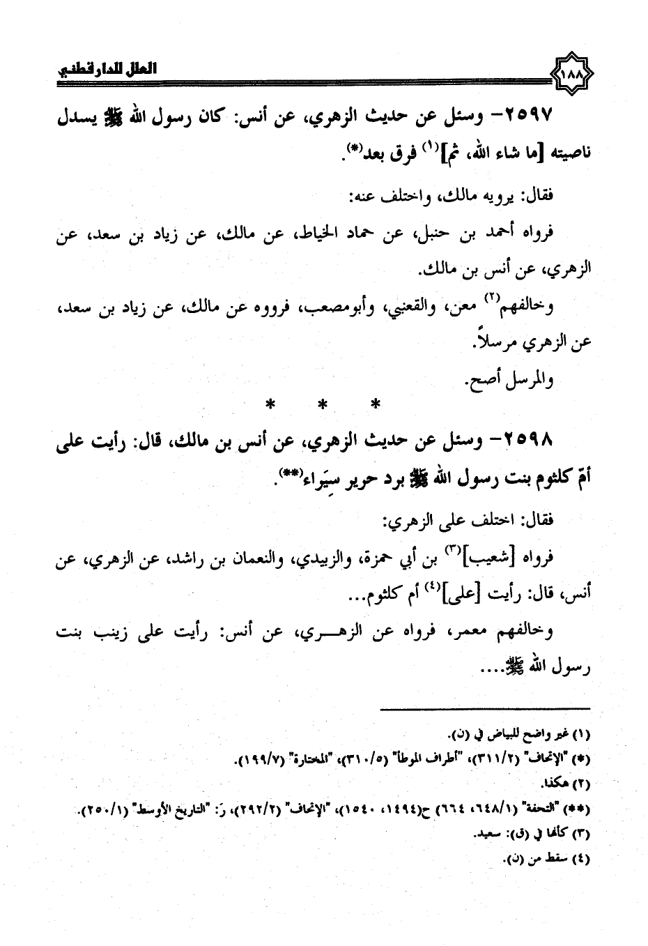 2598- وسئل عن حديث الزهري، عن أنس بن مالك، قال: رأيت على أم كلثوم بِنْتِ رَسُولِ اللَّهِ صَلَّى اللَّهُ عَلَيْهِ وَسَلَّمَ برد حرير سيراء.