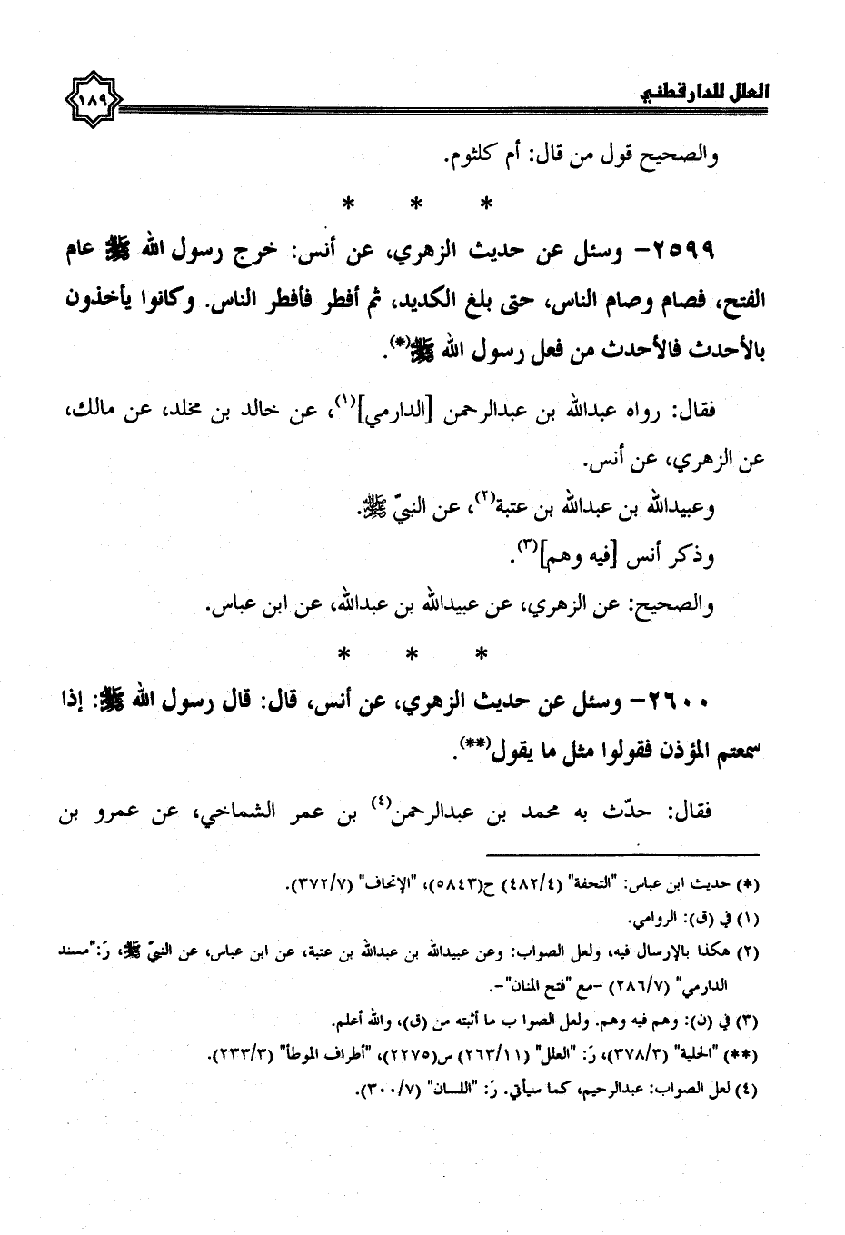 فقال: رواه عبد الله بن عبد الرحمن الدارمي، عَنْ خَالِدِ بْنِ مَخْلَدٍ، عَنْ مَالِكٍ، عَنِ الزهري، عن أنس.