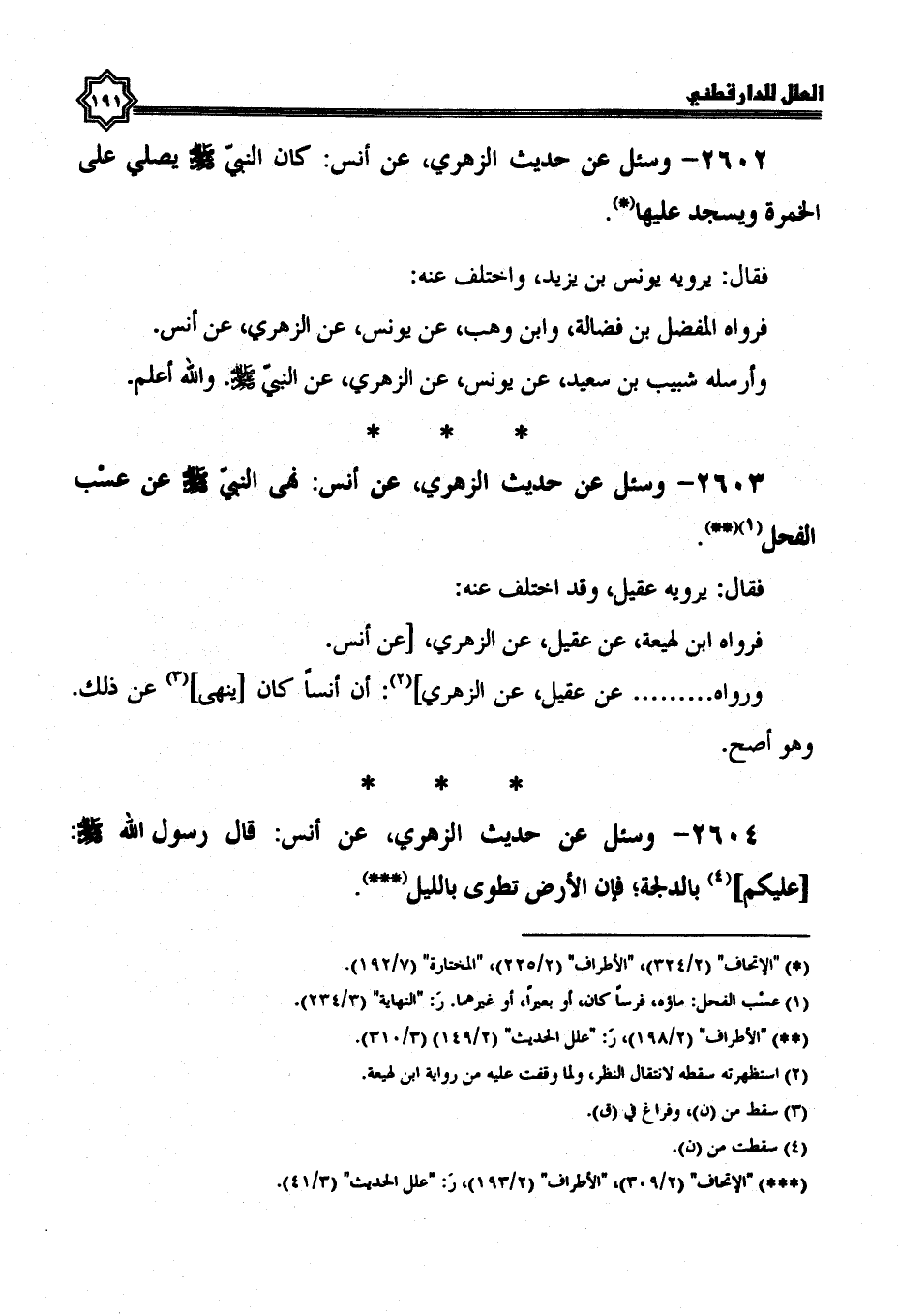 2602- وسئل عن حديث الزهري، عن أنس كَانَ النَّبِيُّ صَلَّى اللَّهُ عَلَيْهِ وَسَلَّمَ يُصَلِّي على الخمرة ويسجد عليها.