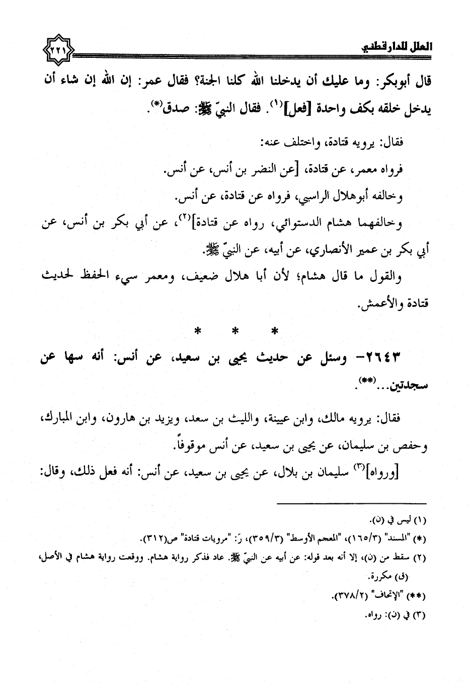 2643- وسئل عن حديث يحيى بن سعيد، عن أنس أنه سها عن سجدتين ...