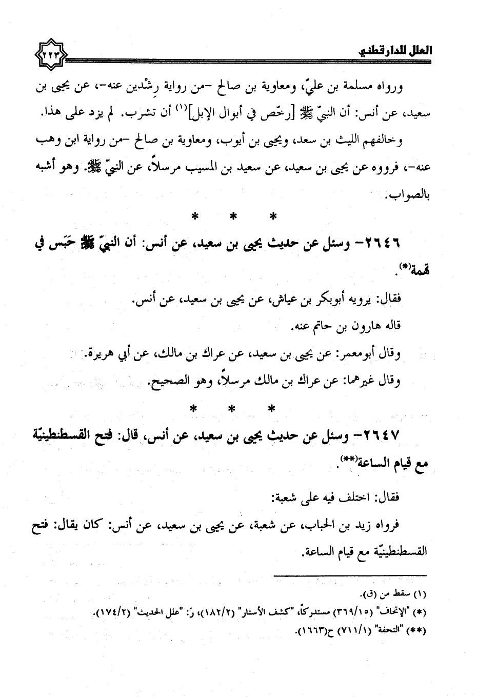 2647- وسئل عن حديث يحيى بن سعيد، عن أنس، قال: فتح القسطنطينية مع قيام الساعة فقال: اختلف فيه على شعبة؛
