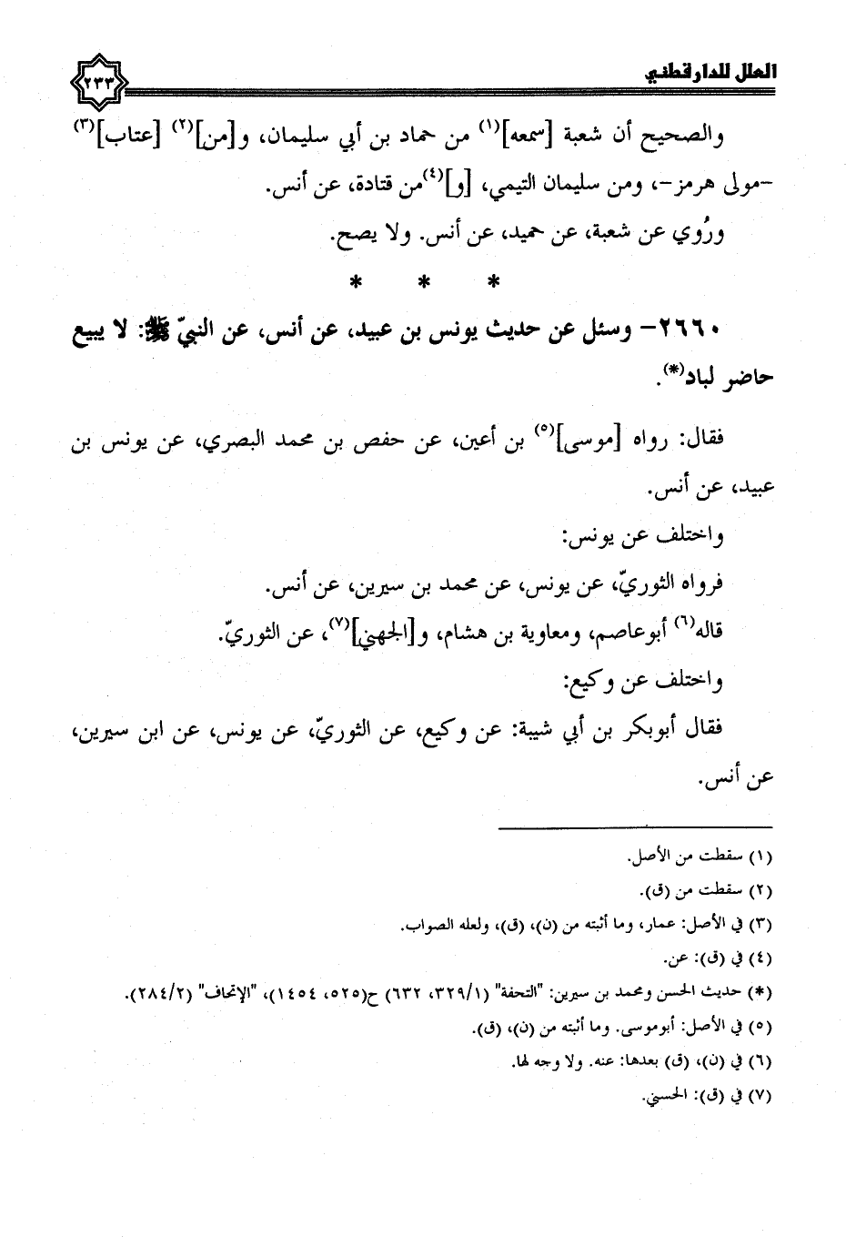 2660- وسئل عن حديث يونس بن عبيد، عَنْ أَنَسٍ، عَنِ النَّبِيِّ صَلَّى اللَّهُ عَلَيْهِ وسلم: لا يبيع حاضر لباد.