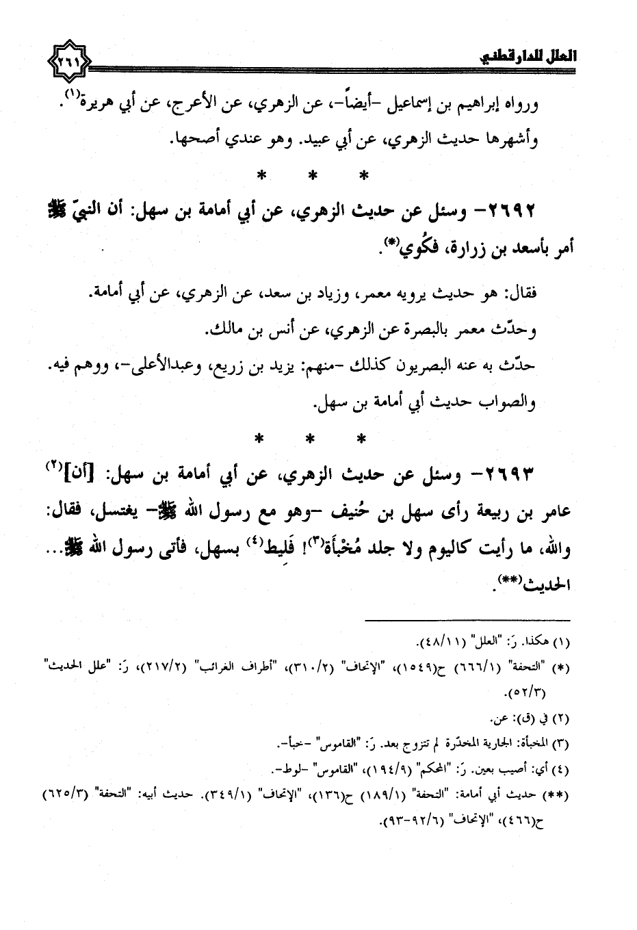 2693- وسئل عن حديث الزهري، عن أبي أمامة بن سهل؛ أن عامر بن ربيعة رأى سهل بن حنيف، وَهُوَ مَعَ رَسُولِ اللَّهِ صَلَّى اللَّهُ عَلَيْهِ وَسَلَّمَ، يغتسل، فقال: والله، ما رأيت كاليوم ولا جلد مخبأة! فليط بسهل، فَأُتِيَ رَسُولُ اللَّهِ صَلَّى اللَّهُ عَلَيْهِ وَسَلَّمَ ... الحديث.