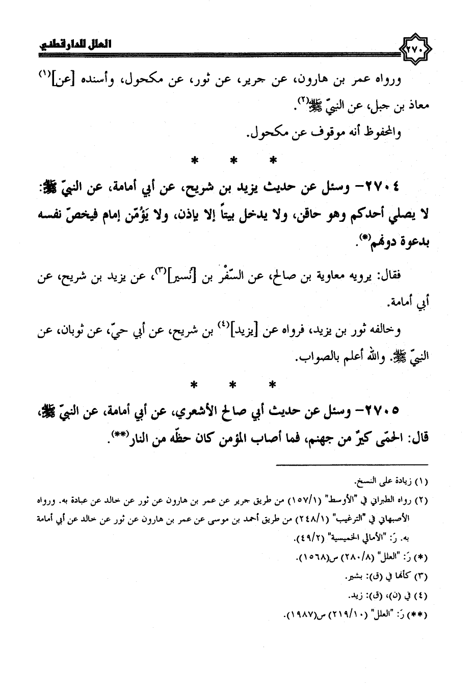 2704- وسئل عن حديث يَزِيدَ بْنِ شَرِيحٍ، عَنْ أَبِي أُمَامَةَ، عَنِ النبي صلى الله عليه وسلم لا يصلي أحدكم وهو حاقن، ولا يدخل بيتا إلا بإذن، ولا يؤمن إمام فيخص نفسه بدعوة دونهم.