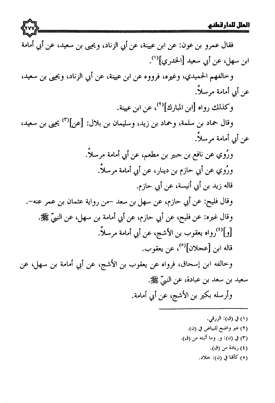 وقال حَمَّادُ بْنُ سَلَمَةَ، وَحَمَّادُ بْنُ زَيْدٍ، وَسُلَيْمَانُ بن بلال: عَنْ يَحْيَى بْنِ سَعِيدٍ، عَنْ أَبِي أُمَامَةَ مرسلا.