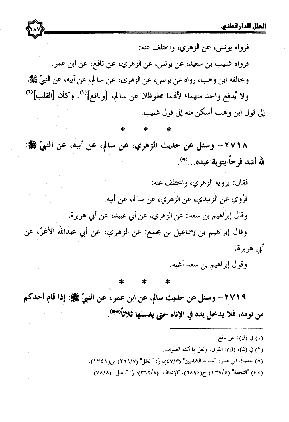 2718- وسئل عن حديث الزُّهْرِيِّ، عَنْ سَالِمٍ، عَنْ أَبِيهِ، عَنِ النَّبِيِّ صَلَّى اللَّهُ عَلَيْهِ وسلم: لله أشد فرحا بتوبة عبده ...