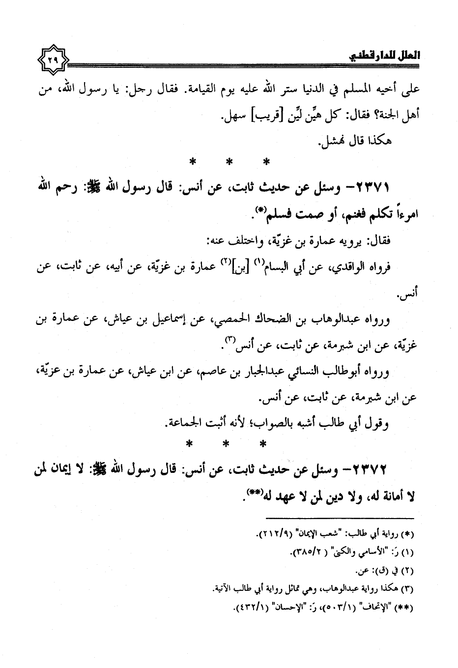 2371- وسئل عن حديث ثابت، عن أنس، قال رسول الله صلى الله عليه وسلم: رحم الله امرءا تكلم فغنم، أو صمت فسلم.