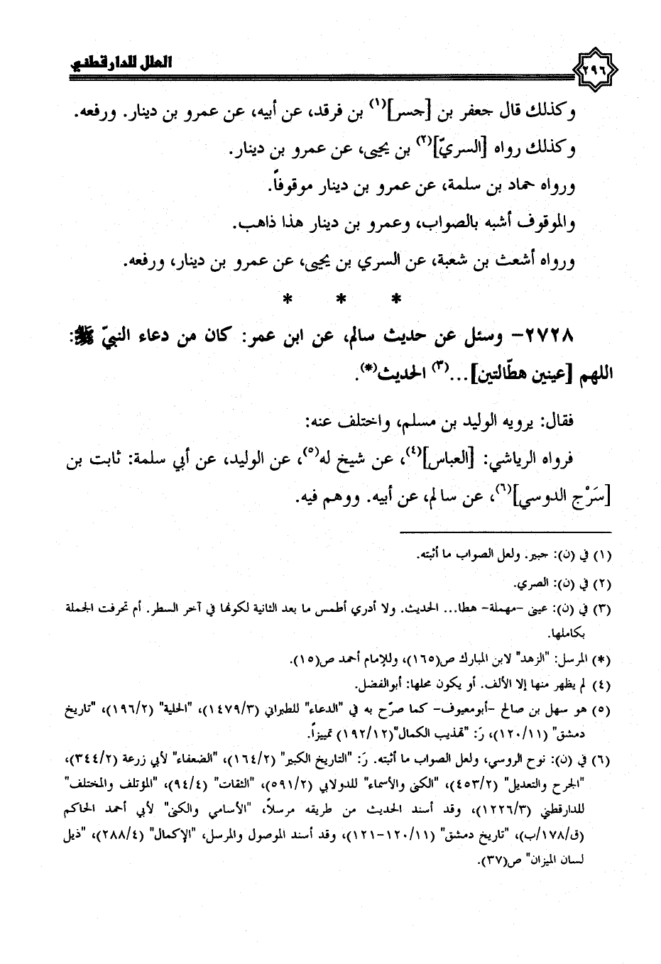 2728- وَسُئِلَ عَنْ حَدِيثِ سَالِمٍ، عَنِ ابْنِ عُمَرَ؛ كَانَ مِنْ دُعَاءٍ النَّبِيِّ صَلَّى اللَّهُ عَلَيْهِ وسلم: اللهم عينين هطالتين ... الحديث.