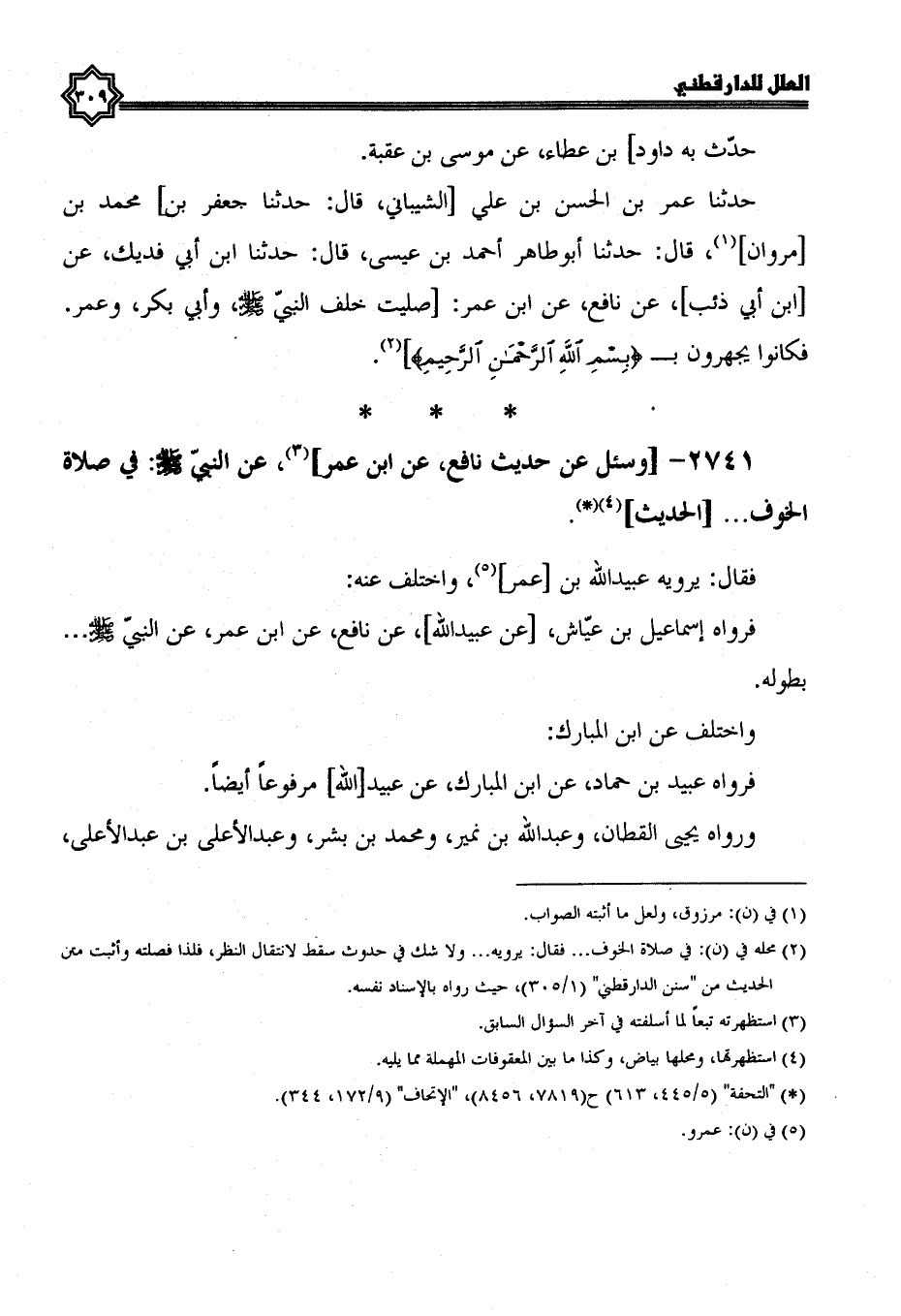 2741- وَسُئِلَ عَنْ حَدِيثِ نَافِعٍ، عَنِ ابْنِ عُمَرَ، عَنِ النَّبِيِّ صَلَّى الله عليه وسلم؛ في صلاة الخوف ... الْحَدِيثَ.