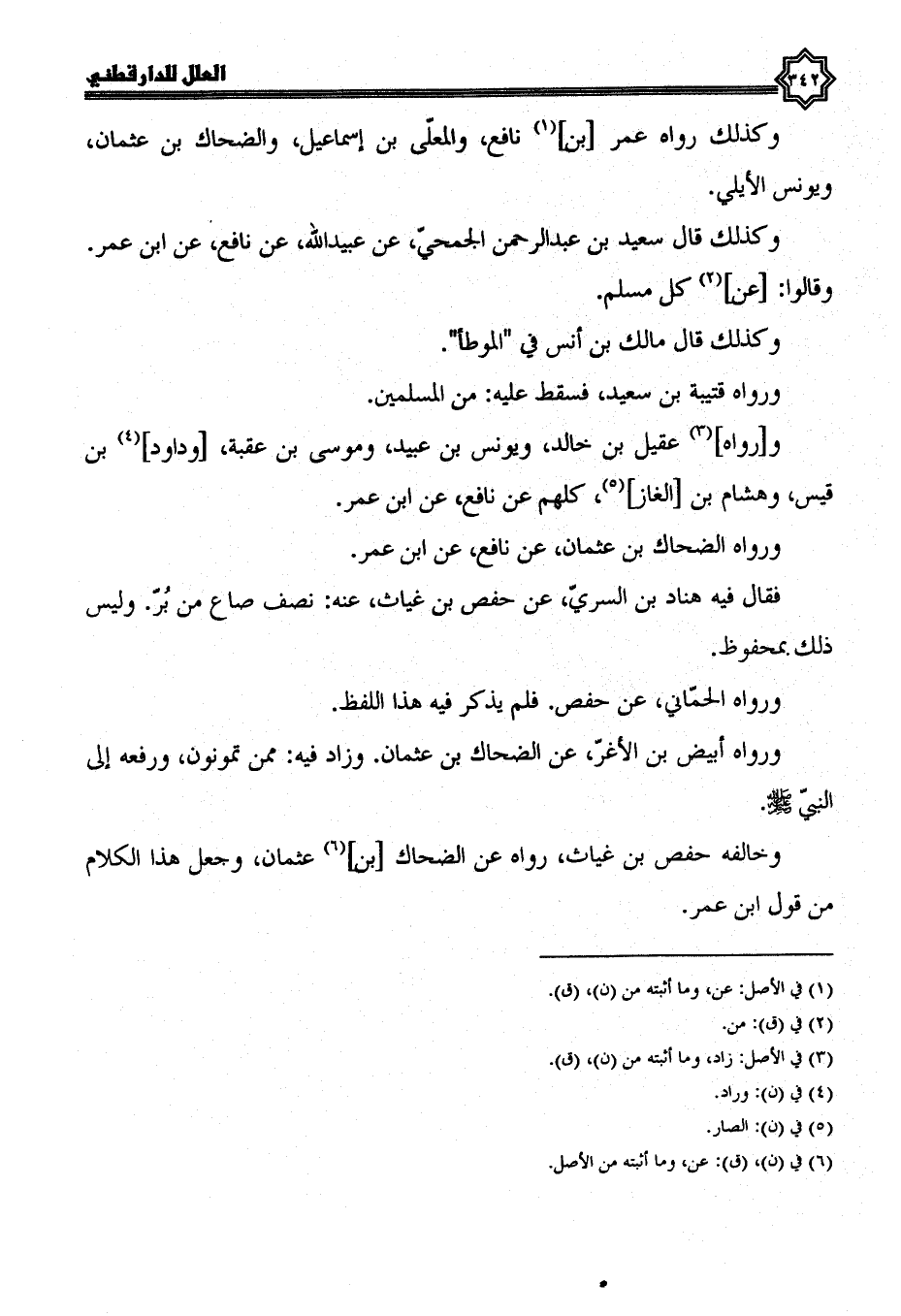 وكذلك قال سعيد بن عبد الرحمن الجمحي، عَنْ عُبَيْدِ اللَّهِ، عَنْ نَافِعٍ، عَنِ ابْنِ عمر، وقالوا: "عن كل مسلم".
