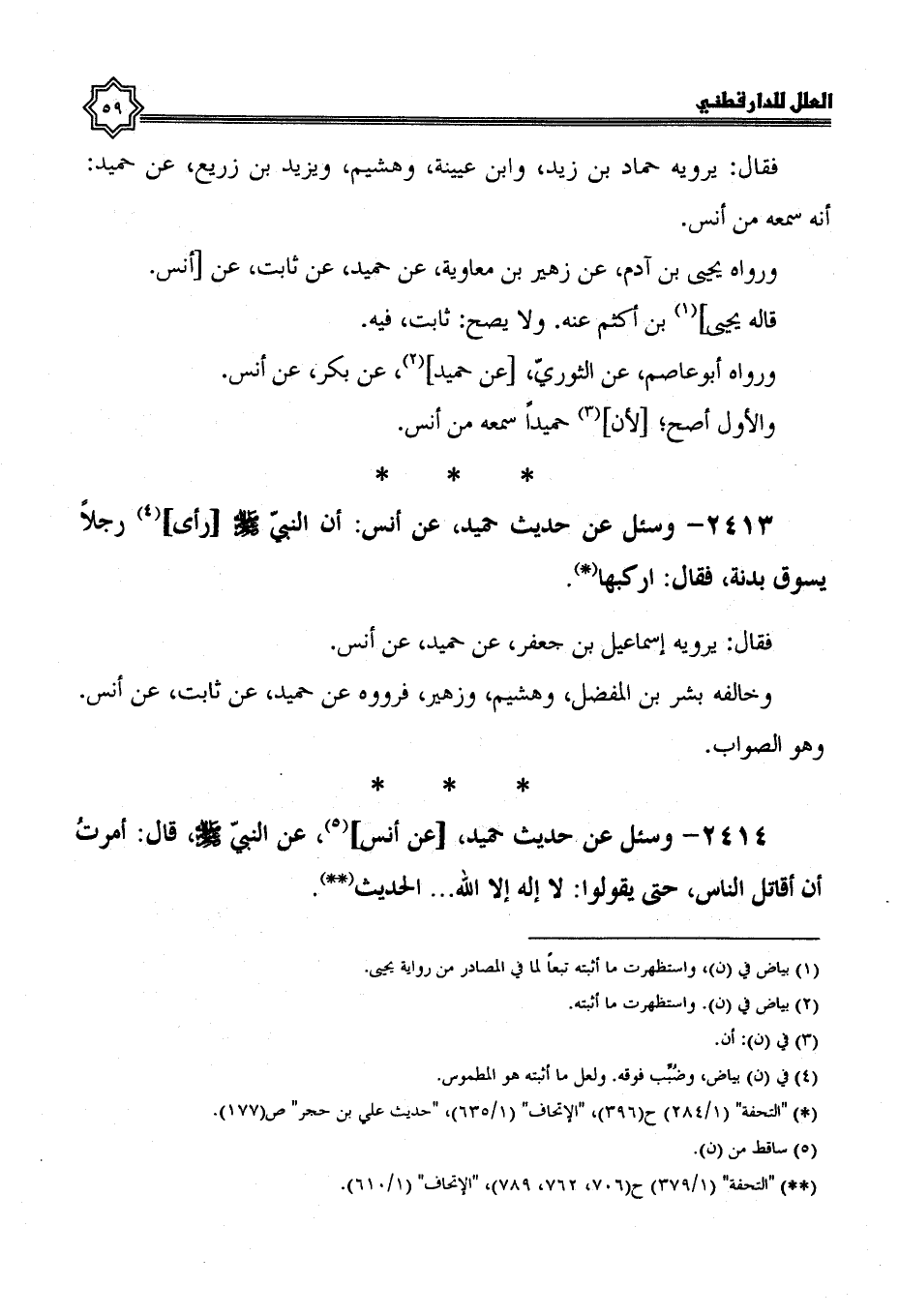 2412- وسئل عن حديث حميد، عَنْ أَنَسٍ أَنَّ النَّبِيَّ صَلَّى اللَّهُ عَلَيْهِ وسلم بالبيداء يهل بالحج والعمرة.