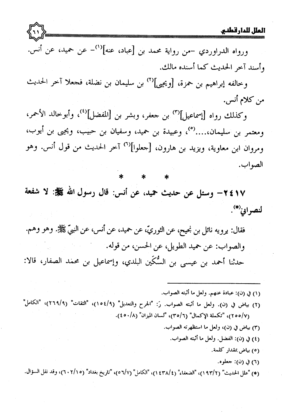 2417- وسئل عن حديث حميد، عن أنس، قال رسول الله صلى الله عليه وسلم: لا شفعة لنصراني.