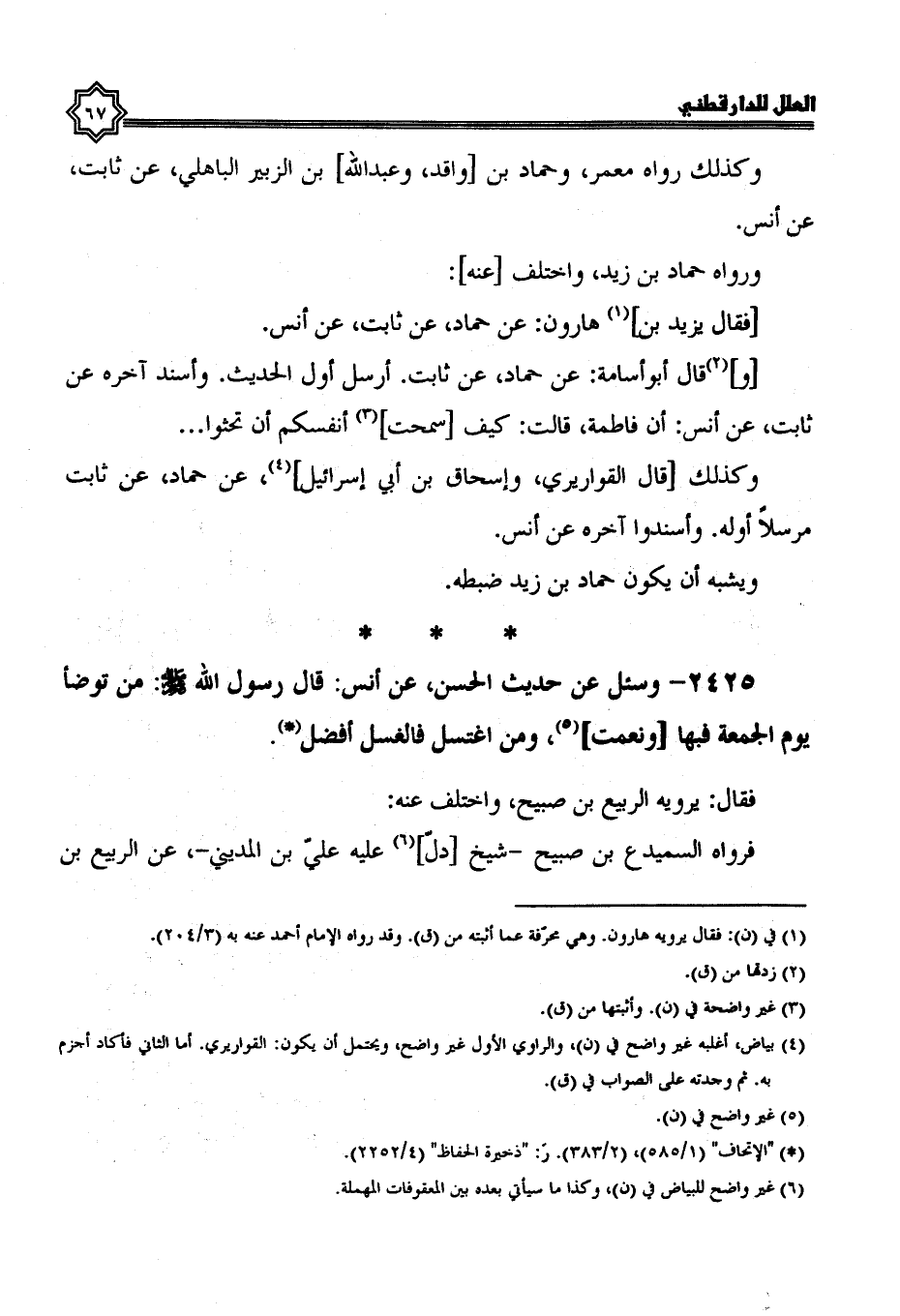 2425- وسئل عن حديث الحسن، عن أنس، قال رسول الله صلى الله عليه وسلم: من توضأ يوم الجمعة فَبِهَا وَنِعْمَتْ، وَمَنِ اغْتَسَلَ فَالْغُسْلُ أَفْضَلُ.