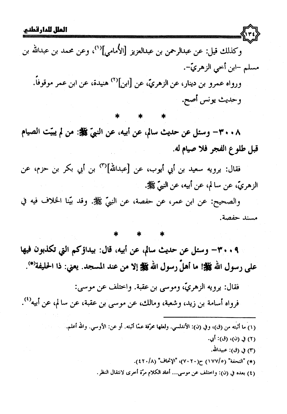 3009- وَسُئِلَ عَنْ حَدِيثِ سَالِمٍ، عَنْ أَبِيهِ، قال: بيداؤكم التي تكذبون فيها عَلَى رَسُولِ اللَّهِ صَلَّى اللَّهُ عَلَيْهِ وَسَلَّمَ ما أهل رَسُولُ اللَّهِ صَلَّى اللَّهُ عَلَيْهِ وَسَلَّمَ أَلَا من عند المسجد، يعني ذا الحليفة.